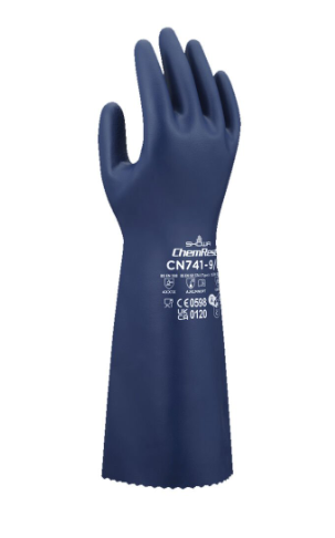 SHOWA CN741, yüksek düzeyde kimyasal dirence sahiptir. 380 mm uzunluğundaki eldiven, zorlu koşullarda bile kullanım sırasında güvenli bir tutuş sağlamak için pürüzlü yüzeye sahiptir.