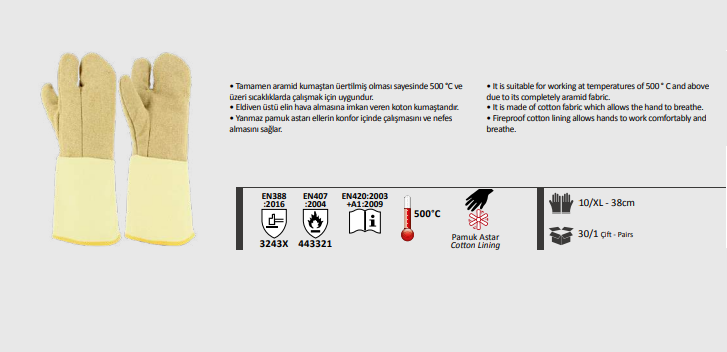 Yüksek ısı dirençli eldiven ( 500 derece)